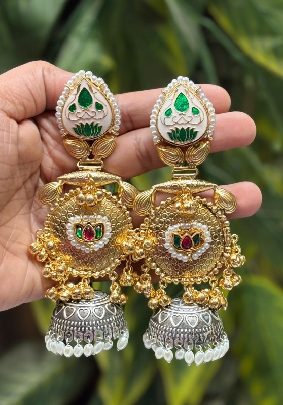 Add a touch of Kashmiri elegance to your style with these beautifully crafted earrings, designed to enhance your ethnic look with timeless charm.